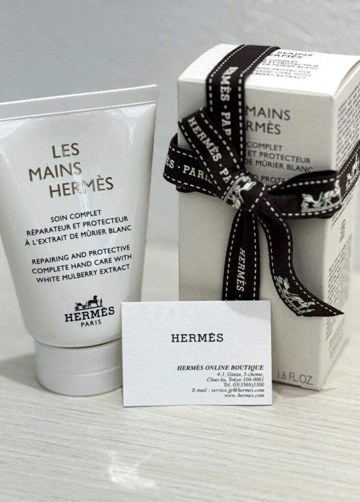 本日は、エルメスの人気ハンドクリーム 「クレームレマン(Crème Mains)」 をお持ち込みいただきました。 高級ブランドならではの上質な香りと使用感で、ギフトとしても人気の高いアイテムです。