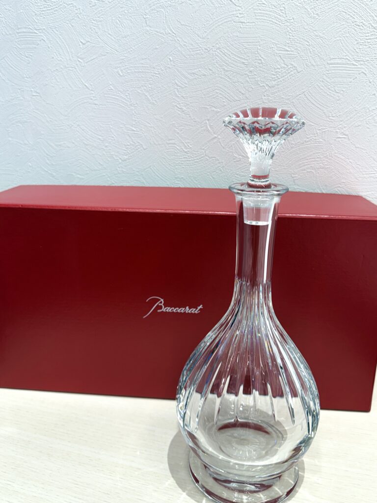 本日は、バカラの中でも特に人気の高い マッセナ(Massena)シリーズのデキャンタ 28.2cm をお持ち込みいただきました。 深いカットが特徴的で、光を受けて輝くクリスタルの美しさが際立つ逸品です。 状態も良好で、しっかり査定させていただきました。